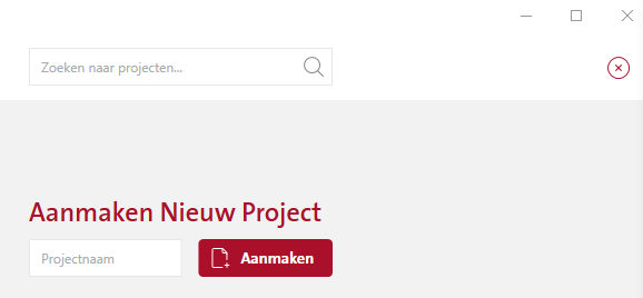 Aan de rechterkant heb je de mogelijkheid om een nieuw project aan te maken in de actieve projectmap. Houd rekening bij de naamgeving van projecten (bijv. punten en schuine strepen zijn niet toegestaan).